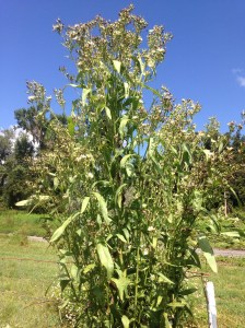 At maturity, Indian lettuce can be taller than a person, as it flowers and sets seed.